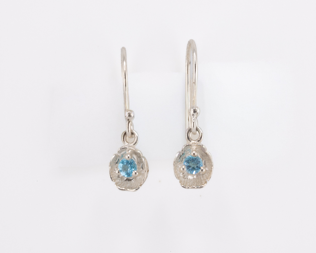 925 Silver Flower Drop Earrings - Blue Topaz