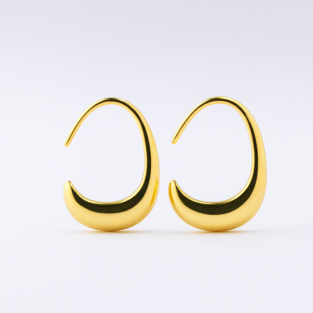 Sculptural and bold, these reversed C huggies bring a sleek, modern edge — the perfect statement for a fashion-forward look.